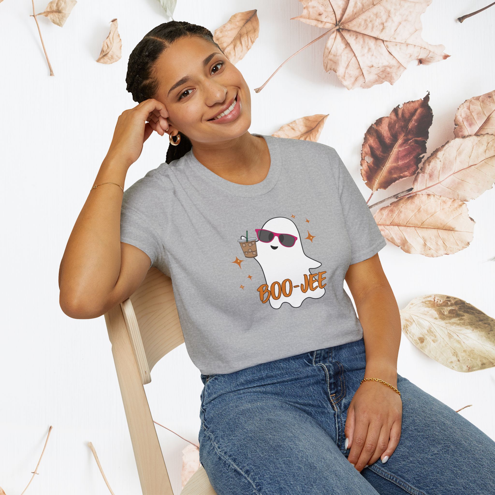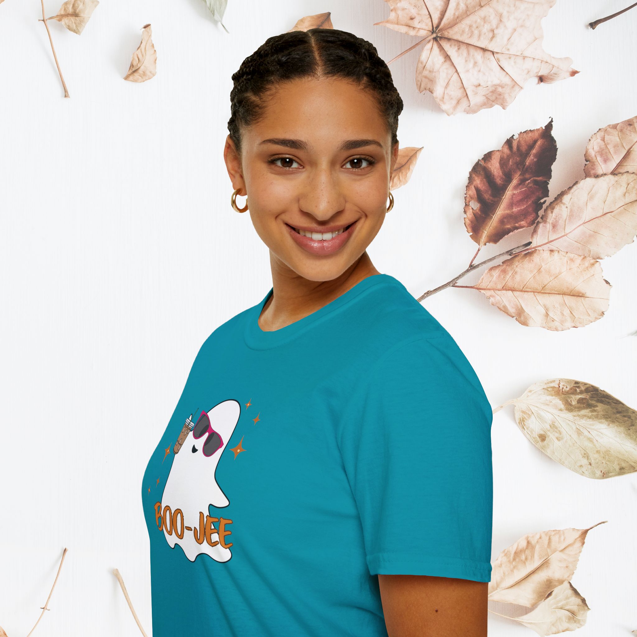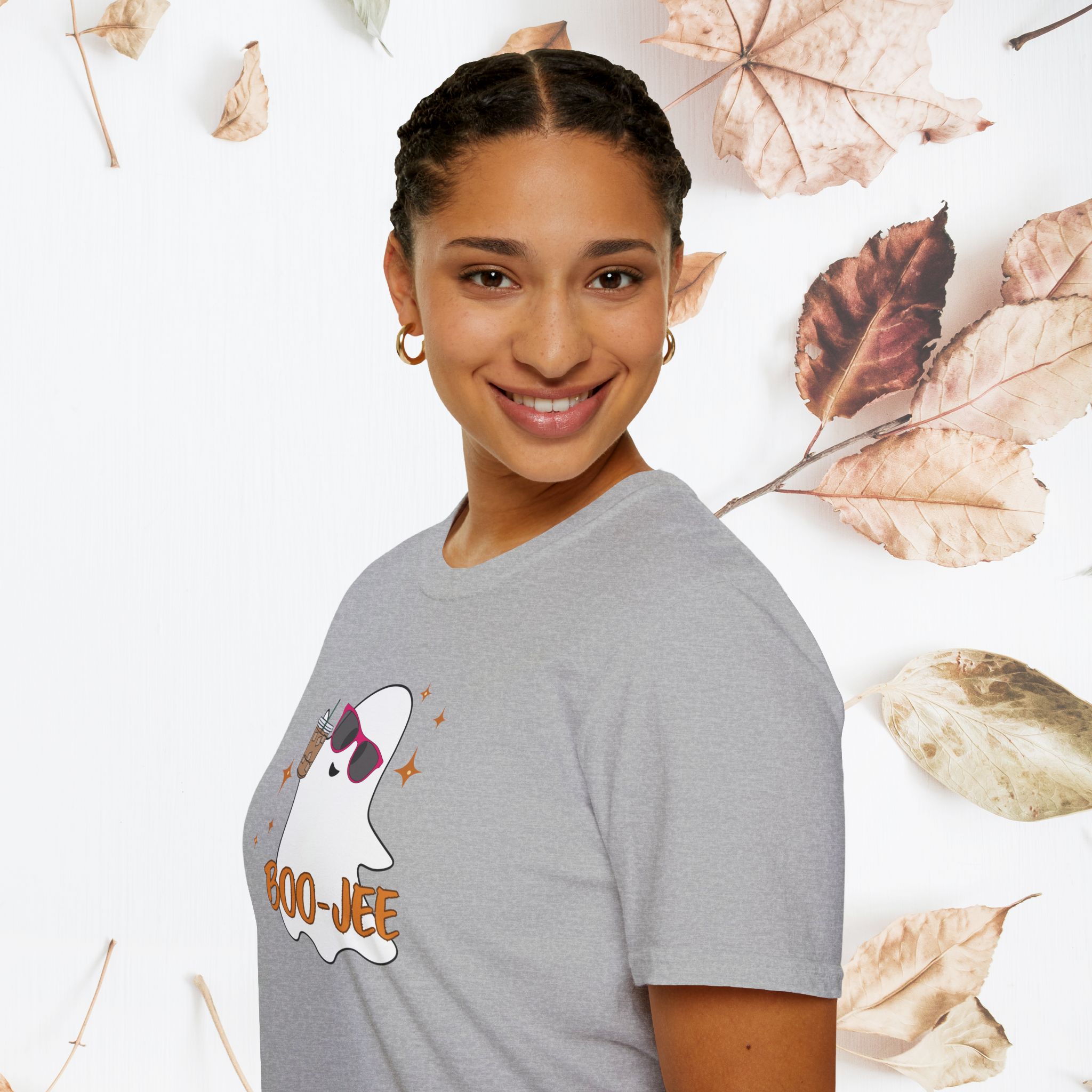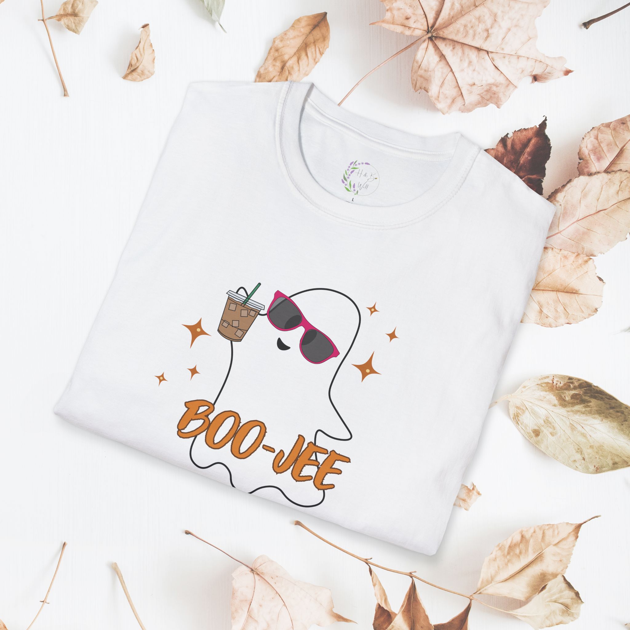 Get into the spooky spirit with a touch of style! This “Boojee” t-shirt features an adorable ghost graphic that’s equal parts cute and chic. Perfect for those who love a little glam with their Halloween fun. Whether you’re hitting a party or just want to add some ghostly charm to your wardrobe, this tee is the perfect choice. Soft, comfortable, and sure to turn heads—embrace your boojee side this Halloween season!