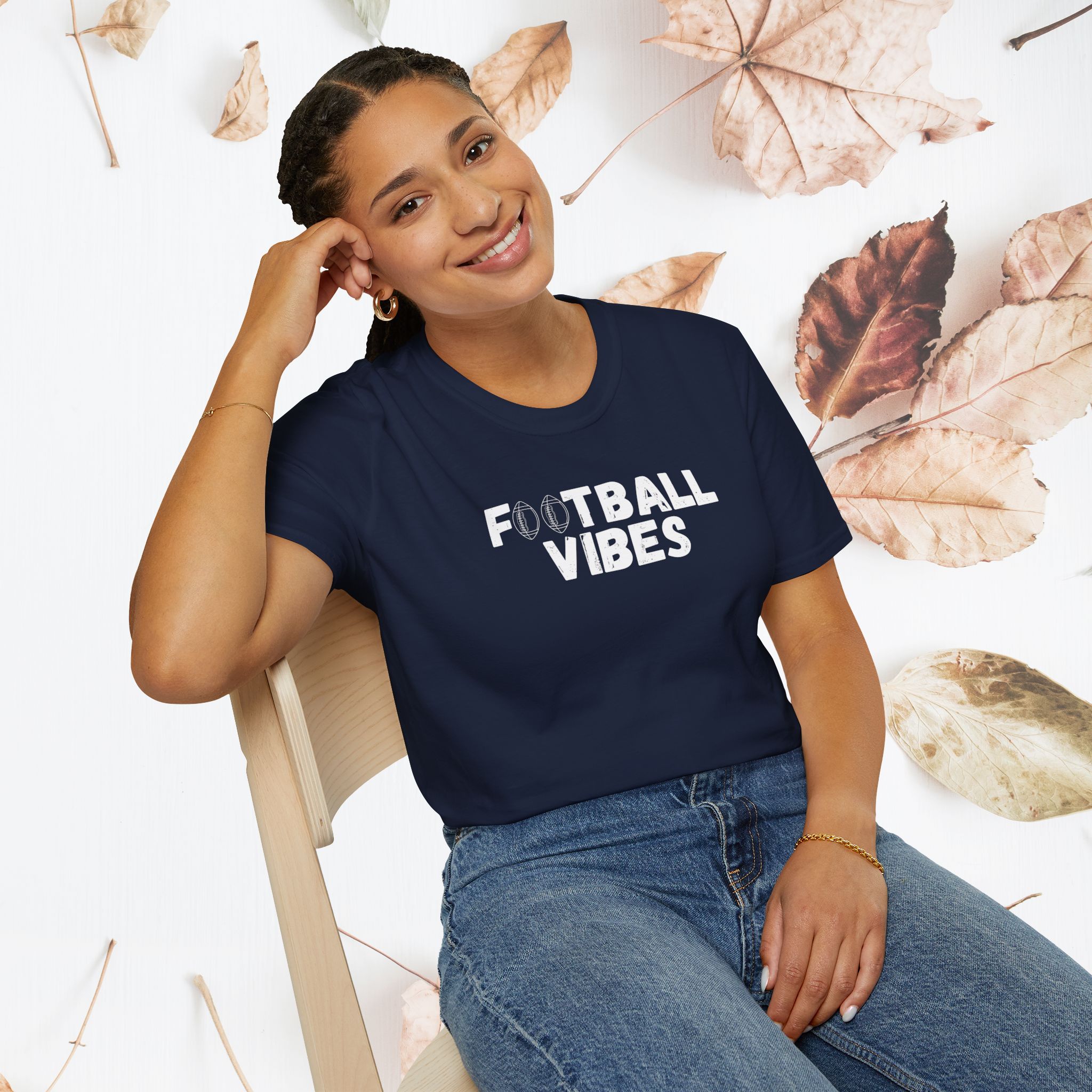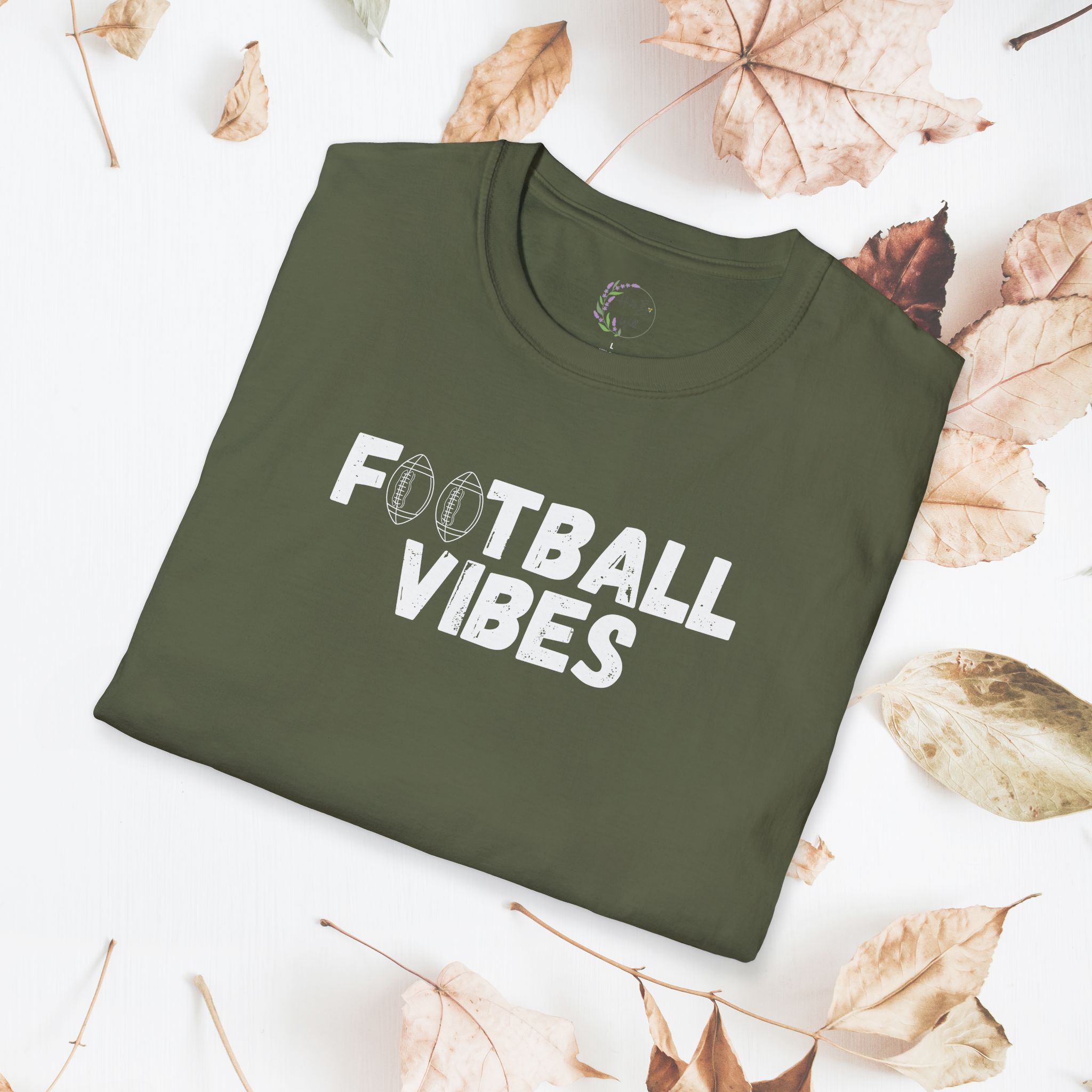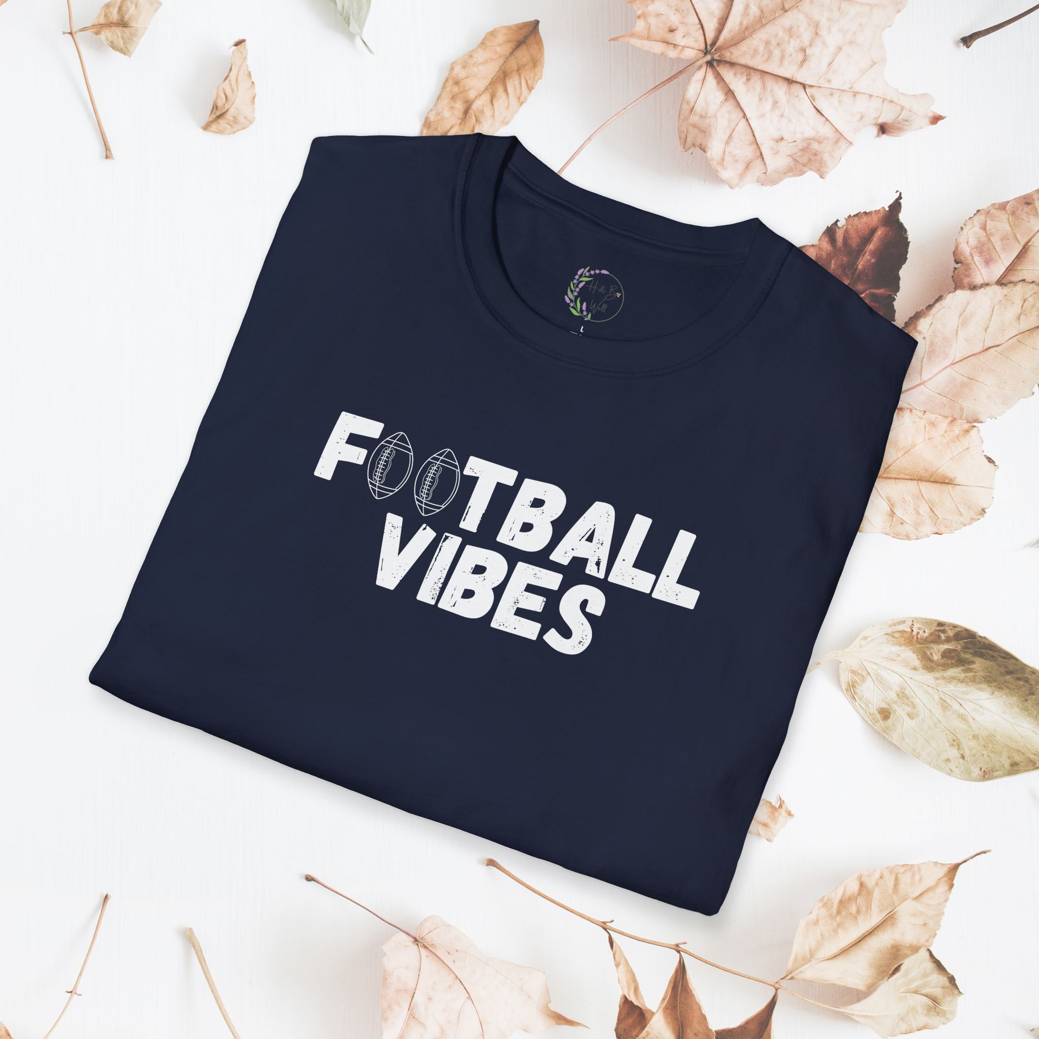 Embrace the game day spirit with this “Football Vibes” tshirt! Designed for fans who live for the thrill of the game, this comfy tshirt is perfect for cheering on your team, tailgating, or just hanging out with fellow football lovers. Soft, stylish, and full of sports energy, it’s the ideal addition to any football fan’s wardrobe. Get ready to show off your love for the game with ultimate comfort and style!