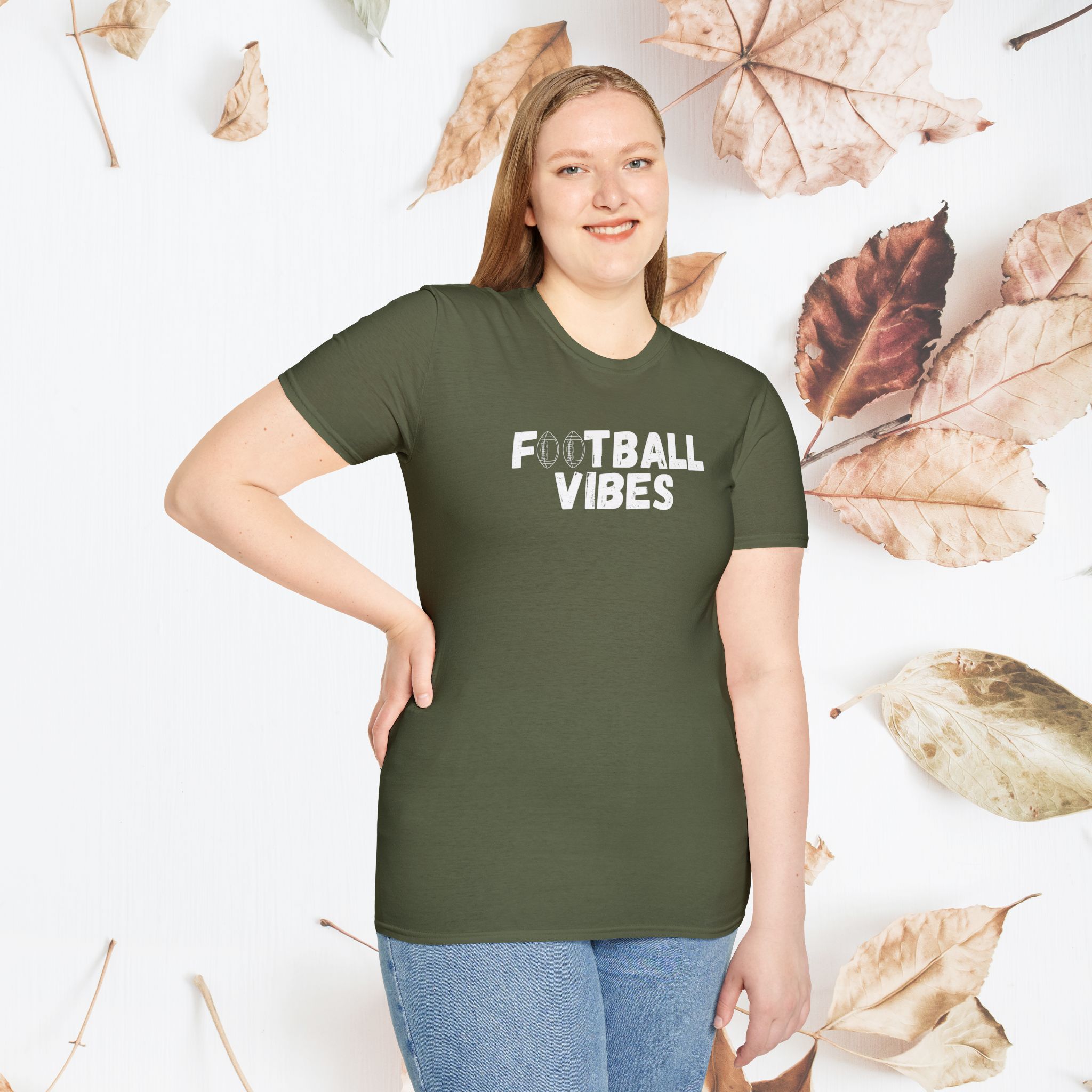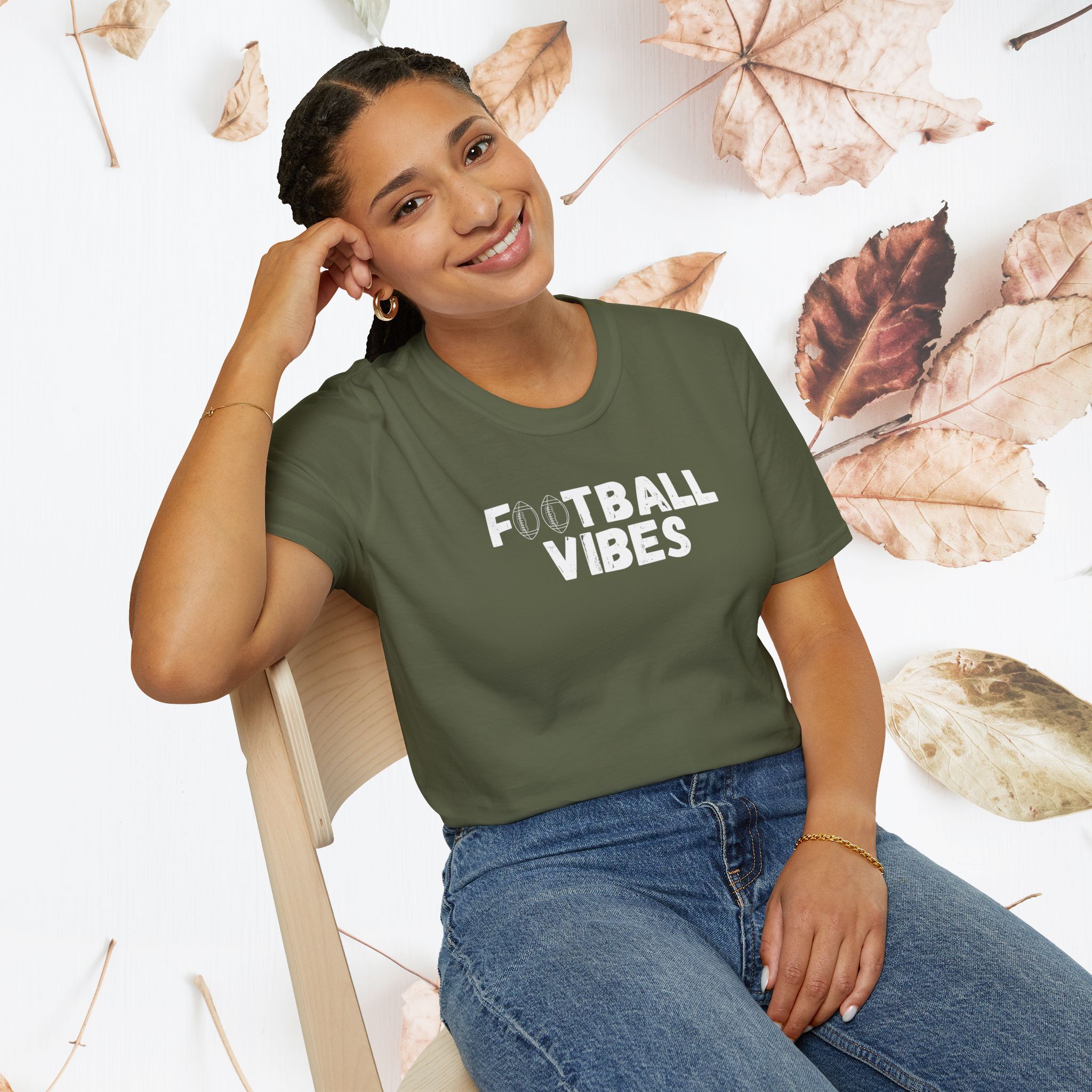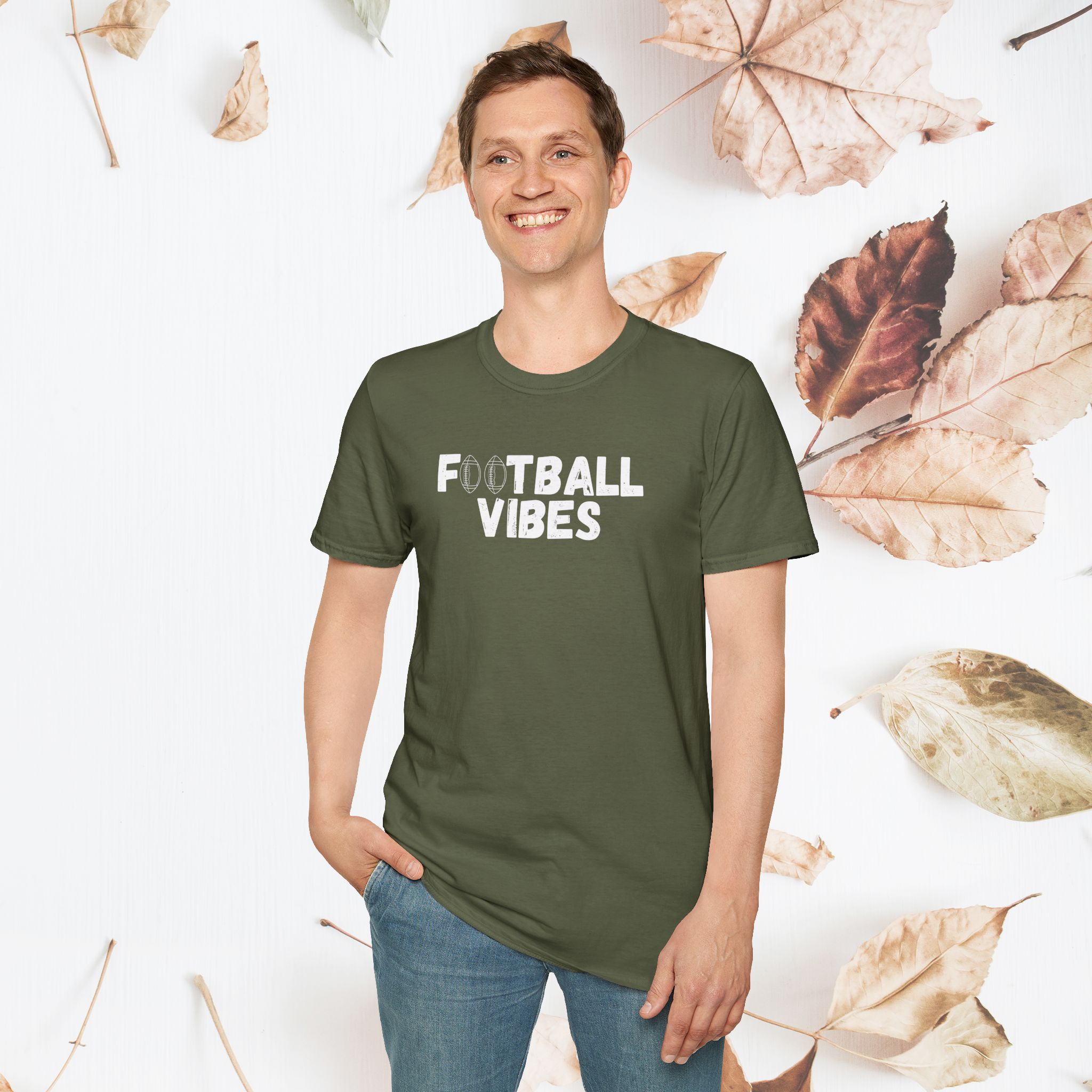 Embrace the game day spirit with this “Football Vibes” tshirt! Designed for fans who live for the thrill of the game, this comfy tshirt is perfect for cheering on your team, tailgating, or just hanging out with fellow football lovers. Soft, stylish, and full of sports energy, it’s the ideal addition to any football fan’s wardrobe. Get ready to show off your love for the game with ultimate comfort and style!