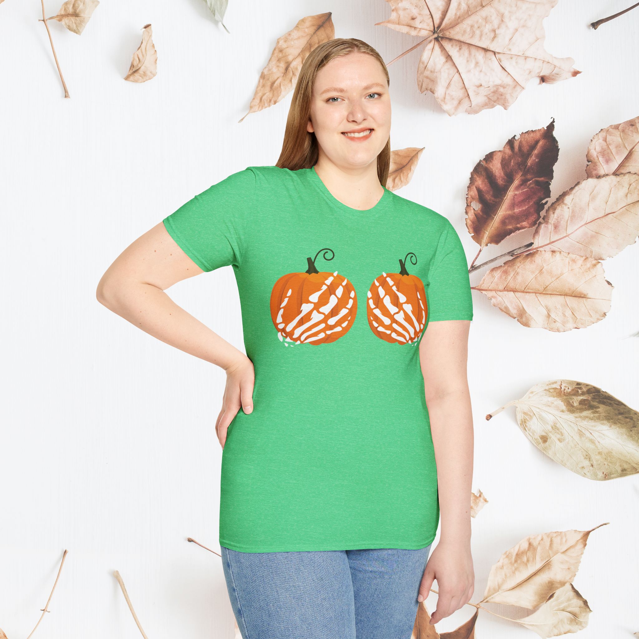 Get into the Halloween spirit with this cheeky “Skeleton Hands on Pumpkins” tshirt! Featuring a playful design with skeleton hands perfectly placed on pumpkins, this cozy sweatshirt adds a fun and spooky touch to your seasonal wardrobe. Perfect for Halloween parties, pumpkin patch visits, or just embracing the fall vibes with a hint of humor. This unique and comfy tshirt is a must-have for those who love a mix of creepy and cute!