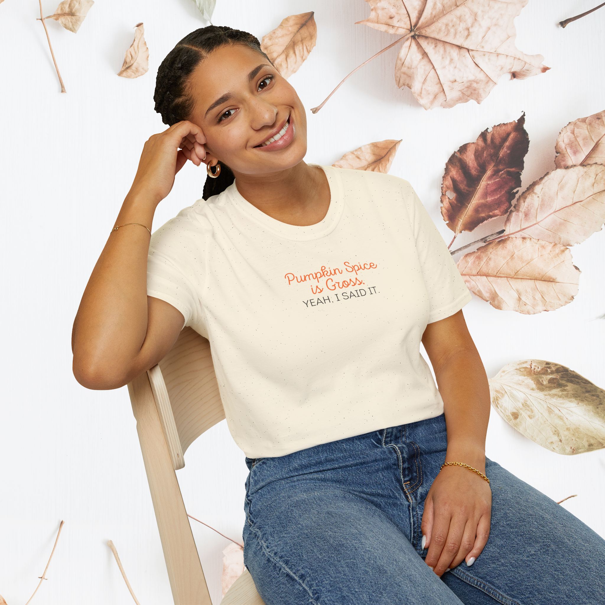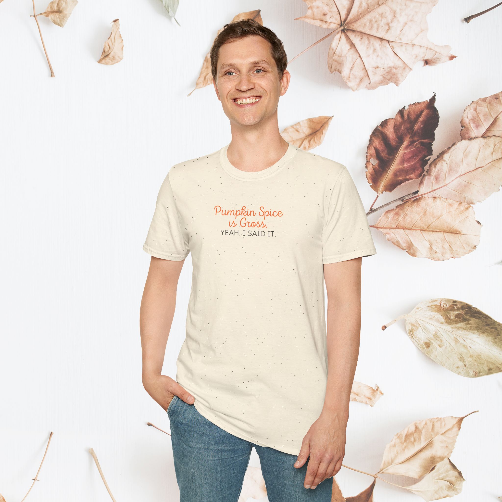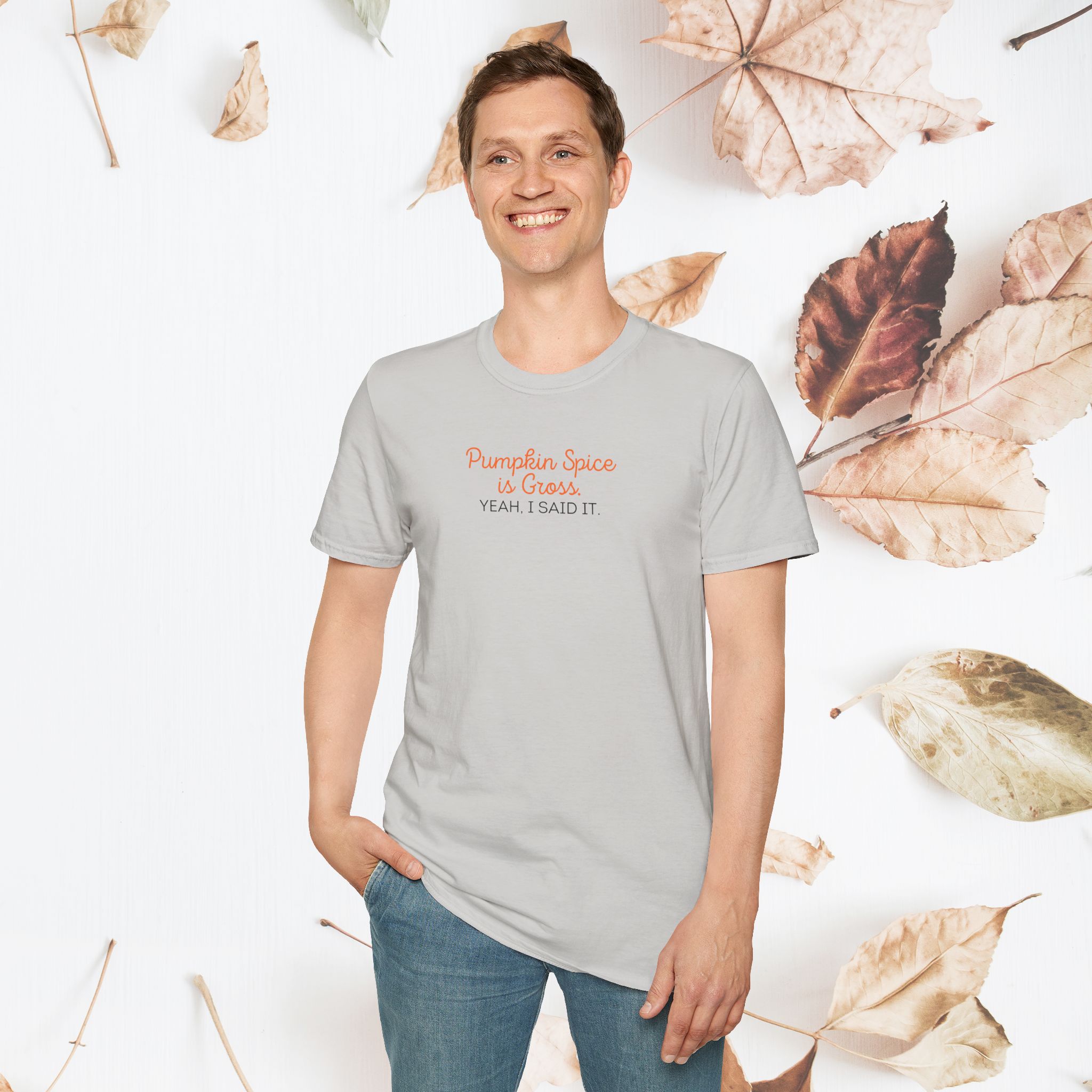 Not a fan of the fall craze? Make your stance clear with this “Pumpkin Spice is Gross. Yeah, I Said It.” t-shirt! Perfect for those who prefer to skip the pumpkin spice hype, this tee is a fun and bold way to express your unique opinion. Made from soft, comfy fabric, it’s ideal for wearing throughout the season and sparking some conversations. Stand out with this playful and daring t-shirt!